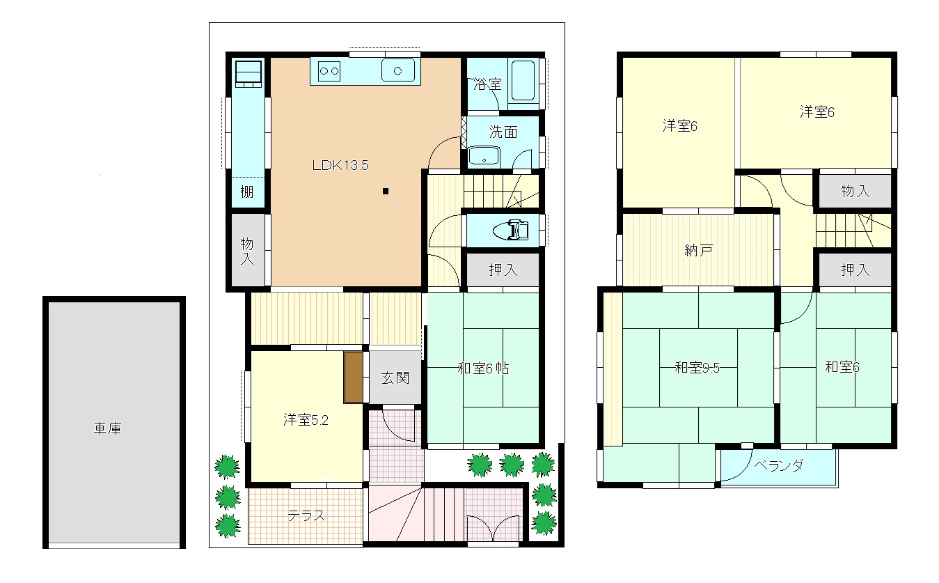 構造木造瓦葺2階建 / 鉄筋コンクリート造陸屋根平屋建(車庫)